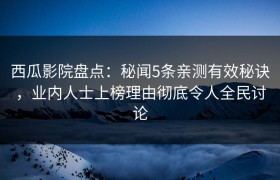 最近,西瓜影院的突发爆料引起了全网的高度关注,一段关于某知名明星深夜秘闻的消息迅速成为了社交媒体的焦...