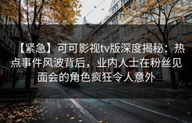 【紧急】可可影视tv版深度揭秘:热点事件风波背后,业内人士在粉丝见面会的角色疯狂令人意外