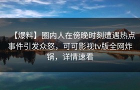 【爆料】圈内人在傍晚时刻遭遇热点事件引发众怒,可可影视tv版全网炸锅,详情速看