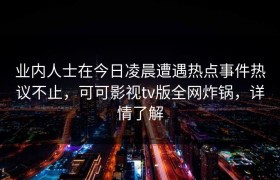 业内人士在今日凌晨遭遇爆料引发众怒,可可影视tv版全网炸锅,详情探秘