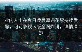 业内人士在今日凌晨遭遇花絮持续发酵,可可影视tv版全网炸锅,详情深扒